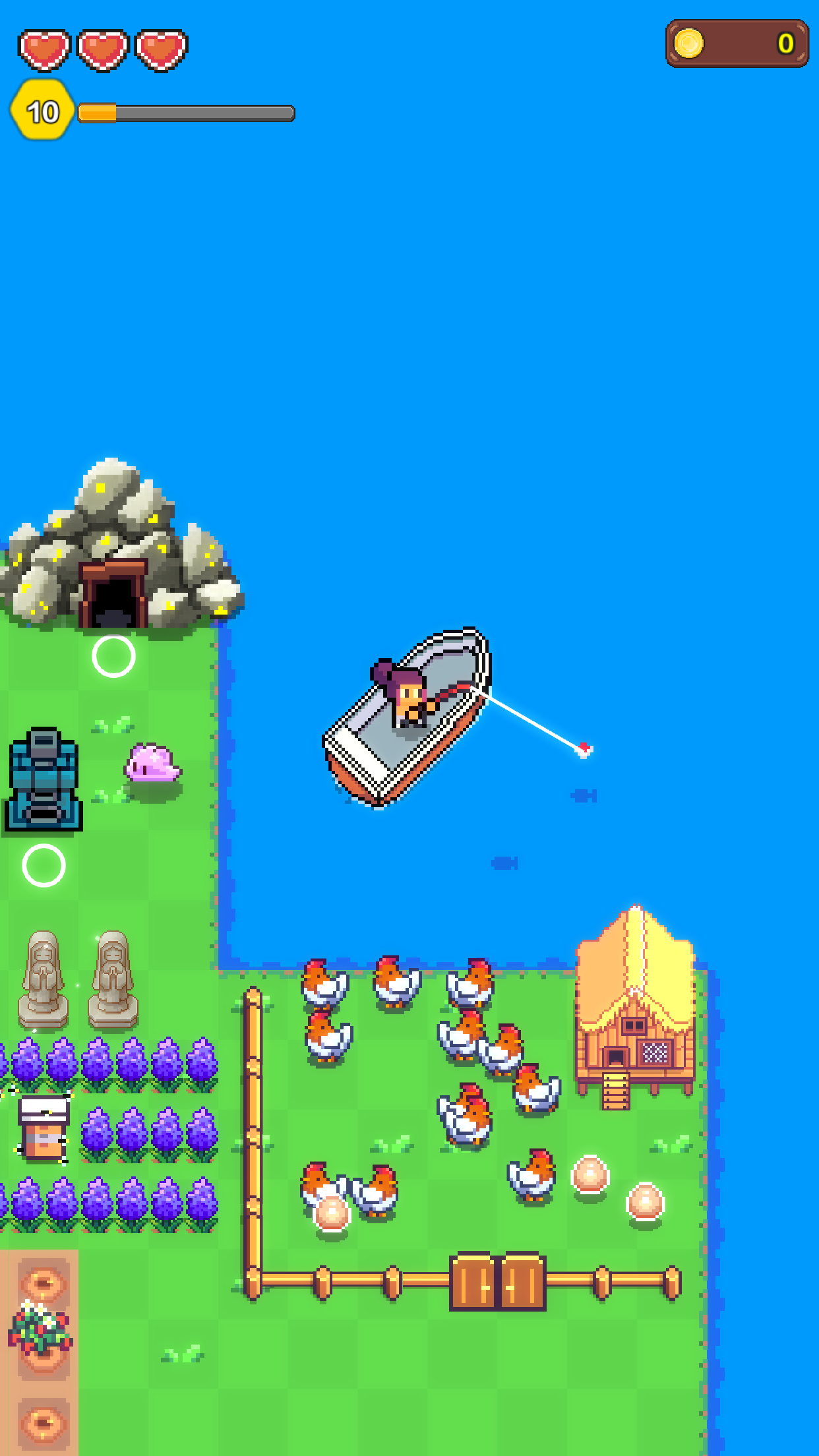,玩家还会发现隐藏的矿洞 , 在探索海岛的过程中,精灵们会照顾农作物和小动物,丰富的游戏内容以及地上地下任由探索的特点,从常见的蔬菜到稀有的果实